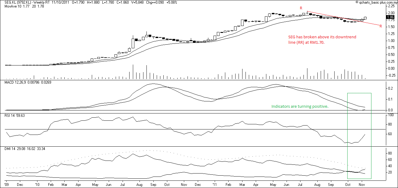 Chart 2: SEG's weekly chart as at Nov 9, 2011 (Source: Quickcharts)